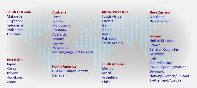 PT DEVNUSA ROGA PLANINDO Services has access to all major vendors around the world, by way of subsidiary or affiliated offices operating out of the following centres :